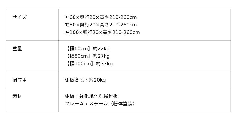 本製品は天井に固定して使用する「突っ張り式」になっており、高さのある設計ながらも安定性と収納力を両立しております。穴開け不要で壁や天井に傷がつくこともないため、賃貸にお住まいの方でも安心して設置可能です。