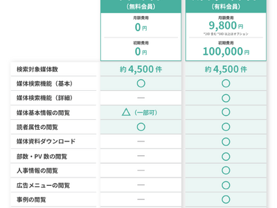 メディアデータオンライン」において、新たに「フリープラン(無料会員)」を設け、2026年4月15日より提供を開始します。無料会員では、スタンダードプラン(有料会員)にて提供している媒体検索・閲覧機能の一部を無料で利用できます。