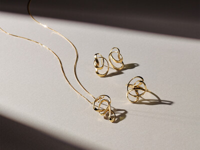 ネックレス:¥275,000 / リング:¥231,000 / ピアス:¥220,000 (全てK18YG)