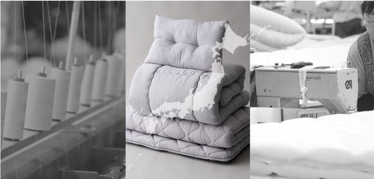 日本国内で縫製・加工された日本製の布団です。わた量のバランス、縫製の強度等、見えない部分に日本製ならではの誠実な品質の差が現れます。海外大量生産品に比べてコストはかかりますが、エムールは販路をインターネット直販に限定にすることでリーズナブルな価格を実現しました。
