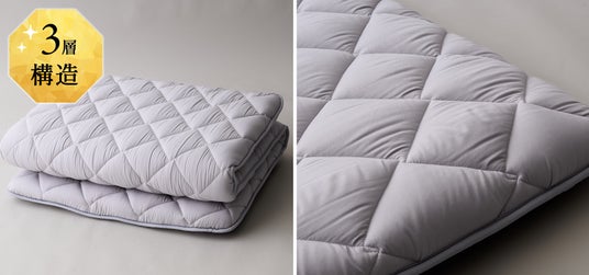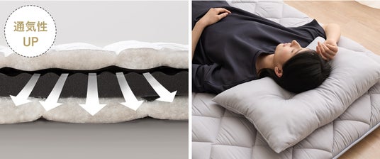 従来の敷き布団にはなかった弾力から寝返りもしやすく、長時間使用しても薄くなりにくい、耐久性のある構造です。