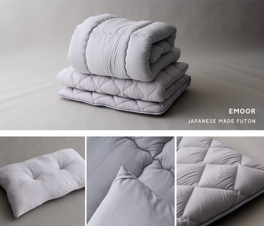 健康家具ブランドEMOORから、トラディショナルな日本製布団を現代仕様にアップグレードした布団セットが登場。旅館のようなふんわりとした寝心地はそのままに、耐久性と体圧分散性を高めました。