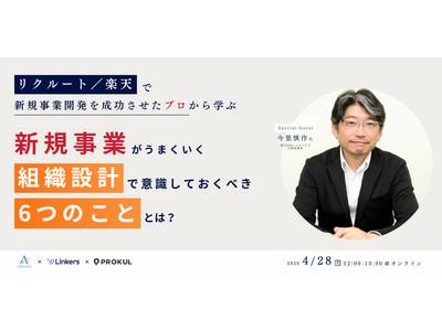株式会社アスマーク(東京都渋谷区東、代表取締役:町田正一)は、2026年4月28日(火)12:00に、 株式会社しんさくラボ、リンカーズ株式会社、株式会社エンファクトリーと、4社共催セミナー「リクルート/楽天で新規事業開発を成功させたプロから学ぶ、新規事業がうまくいく“組織設計で意識しておくべき6つのこと”とは?」を、開催いたします。