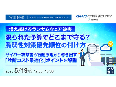 マジセミ株式会社は「増え続けるランサムウェア被害、限られた予算でどこまで守る?脆弱性対策優先順位の付け方」というテーマのウェビナーを開催します。