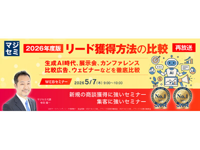 マジセミ株式会社は「【再放送】2026年度版、リード獲得方法の比較」というテーマのウェビナーを開催します。