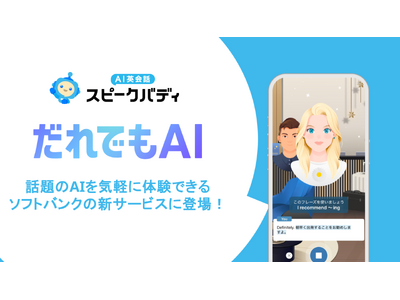 株式会社スピークバディ(本社:東京都中央区、代表取締役CEO:立石剛史、以下「当社」)は、ソフトバンク株式会社(以下「ソフトバンク」)が本日より新たに提供する、話題のAIを簡単な操作で気軽に体験できるサービス「だれでもAI」に、当社が開発・運営する「AI英会話スピークバディ」が登場することをお知らせします。