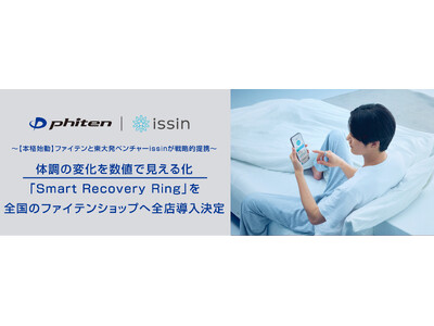 ボディケアカンパニーのファイテン株式会社(所在地:京都市中京区、代表取締役:平田好宏、以下ファイテン)と、家族のカラダとココロの健康維持・増進をテクノロジーで実現する、東京大学発ヘルスケアスタートアップの issin 株式会社(本社:東京都文京区 代表取締役:程 涛、読み:イッシン、以下「issin」)は連携し、一部店舗で実施していたリカバリー可視化のテスト運用を完了。その結果、お客様からの多大な反響をいただいたことから、全国のファイテンショップへの「Smart Recovery Ring(スマートリカバリーリング)」の本格導入を決定いたしました。これまで体感値でしか測れなかった「リカバリー」が数値化され、お客様一人ひとりの悩みに寄り添った最適なセルフケア方法や商品選定をアドバイスしていくことにより、ファイテン商品の価値をより実感できる環境を作ってまいります。