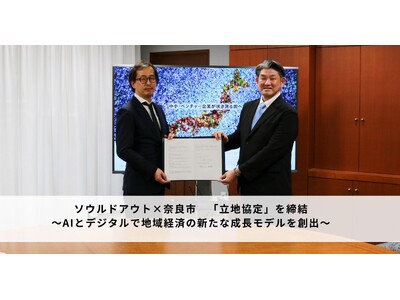 地方を含む全国の志ある中堅・中小企業の成長支援をデジタルマーケティング領域で展開するソウルドアウト株式会社(本社:東京都文京区 代表取締役社長CEO兼CCO:北川 共史、以下「ソウルドアウト」)は、奈良市(市長:仲川 げん)と立地協定を締結し、4月15日に奈良市役所にて締結式を執り行いました。今後、奈良の素晴らしい価値をデジタルとAIの力で全国・世界へと繋げ、市内企業の持続的な事業成長と地域課題の解決を推進してまいります。
