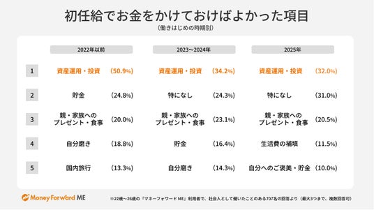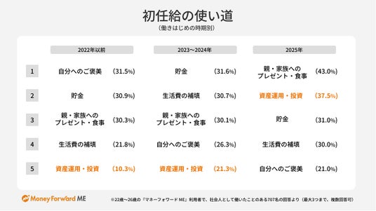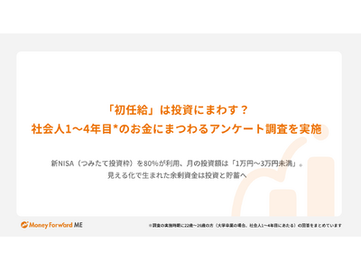 マネーフォワードホーム株式会社は、22~26歳の『マネーフォワード ME』ユーザー(※1)に向けて、初任給や投資・貯蓄、お金にまつわる習慣や価値観についてアンケート調査を実施しました。