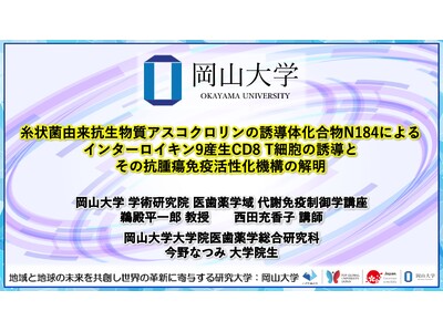 【岡山大学】糸状菌由来抗生物質アスコクロリンの誘導体化合物N184によるインターロイキン9産生CD8 T細胞の誘導とその抗腫瘍免疫活性化機構の解明