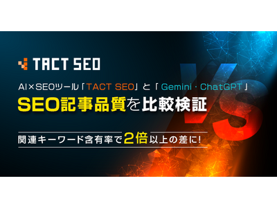 株式会社ウィルゲート(本社:東京都港区、代表取締役:小島 梨揮、以下「ウィルゲート」)が提供するAI×SEOツール「TACT SEO」にて、GeminiやChatGPTなどの主要な生成AIとの記事品質の比較検証を実施しました。その結果、TACT SEOで生成した記事は、SEO重要指標の一つである”関連キーワード含有率”において、2倍以上のスコアを記録したことをお知らせいたします。