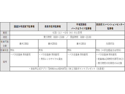 あわせて、今回新たに「奈良県コンベンションセンター駐車場」を無料化し、