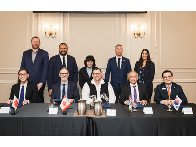 株式会社Mobitect(本社:東京都港区、代表:田中 晋平)は出資会社のウイング株式会社(本社:東京都千代田区、専務取締役:堀元 秀祠)と共に、カナダにある Western Forest Products社(Director,Business Development:Mark Dubois-Phillips)、 Centurion Lumber Manufacturing社(CEO:Jerry Doman)、We Wai Kai Nation社(Chief Councillor:Ronnie Chickite)と韓国の造船会社 Hanwha Ocean(President of Naval Ship Business:Charlie SC Eoh) とバンクーバーにあるTerminal City Clubにて、(後方左から順に)Matt Kiley, Minister Parmar, Debra Toporowski, Lennard Joe, Denesha Doman をお迎えし、業務提携の締結、調印式を行い、本日2026年4月20日(月)リリースとなります。