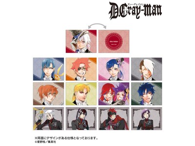 アレン・ウォーカー、ティムキャンピー、神田ユウ、ラビ、リナリー・リー、アレイスター・クロウリー三世、ハワード・リンク、クロス・マリアン、ティキ・ミック、ジャスデロ、デビット、ネア=D=キャンベル、ブックマン、マルコム=C=ルベリエ、千年伯爵、ロード・キャメロット、ワイズリー、フィードラの原作コマイラスト、ちびキャライラスト、カラーイラストをブロマイドに仕上げました。