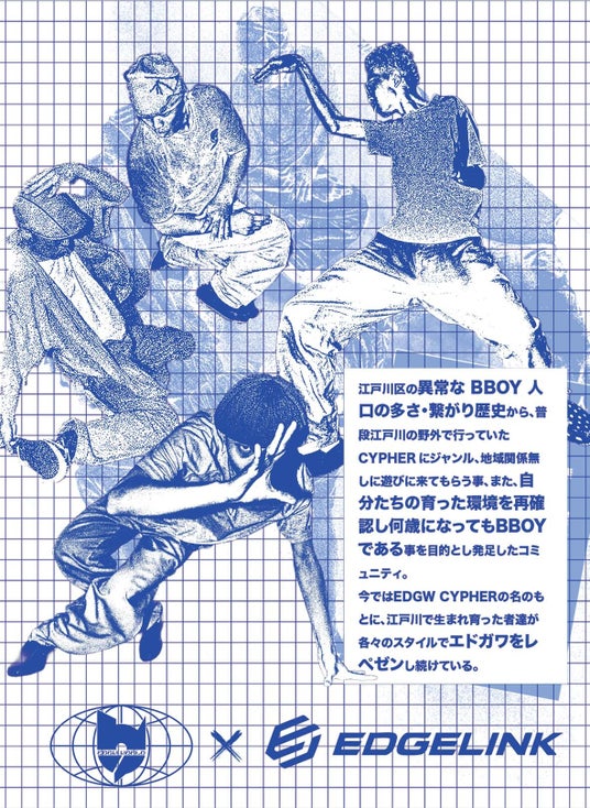 東京都江戸川区を拠点とする「エドガワサイファー」は、地域に根ざしたストリートカルチャーの発信を行い、リアルな感性とエネルギーを原動力に活動する新世代のブレイキンダンスクルーです。総勢