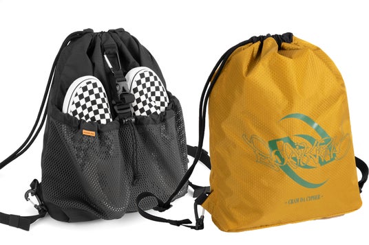 リバーシブル仕様のナップサックは、片面にKODEE ONE氏がデザインしたエッジリンクとエドガワサイファーのコラボロゴを大きくあしらいました。反対面は、「シューズポケット」や「ヘッドフォンホルダー」を配置し、機能性も優れています。