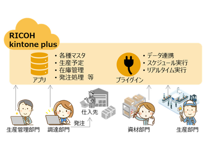 両モデルをRICOH kintone plus上で連携することで、製造から流通工程までの在庫情報を一元管理でき、業務効率化と適正在庫の維持、さらにはコスト削減を通じて、持続可能な製造・物流体制の構築を実現します。
