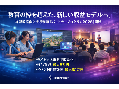 TechHigher』を運営する株式会社エクシード(本社:東京都渋谷区、代表取締役:澤部愛子)は、2026年4月より、加盟教室向けに「パートナープログラム2026」を本格始動します。本プログラムは、プログラミング教室・放課後等デイサービスなど、教育・福祉現場の枠を超えてスキルやつながりを活かし、学びを軸とした新たな収益機会を提供する取り組みです。
