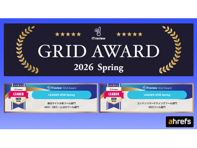 SEO・AI 検索対応を網羅するオールインワン・マーケティングツール「Ahrefs(エイチレフス)」が、ユーザーレビューに基づく権威あるアワードで高評価を継続。