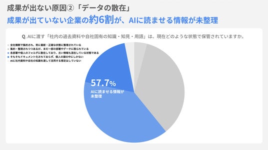 - 「AIに質の高い情報を渡すための環境作り」が進んでいないことが、アウトプットの質が改善しない要因となっています。