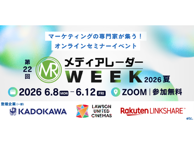 株式会社アイズ(所在地:東京都渋谷区、代表取締役社長:福島範幸、東証グロース:5242)が運営するNo.1*の広告業界のプラットフォーム「メディアレーダー」は、2026年6月8日(月)~6月12日(金)の5日間で、マーケティングセミナーイベント「第22回メディアレーダーWEEK 2026 夏」を開催します。