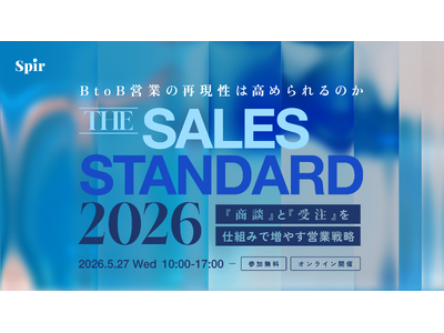 日程調整ツール「Spir(スピア)」を運営する株式会社Spir(本社:東京都中央区、代表取締役:大山晋輔、以下「当社」)は、BtoB営業の属人化を打破し、組織的な成果を最大化するためのオンラインカンファレンス「BtoB営業の再現性は高められるのか『THE SALES STANDARD 2026』~「商談」と「受注」を仕組みで増やす営業戦略~を仕組みで増やす営業戦略~」を2026年5月27日(水)に開催することをお知らせいたします。