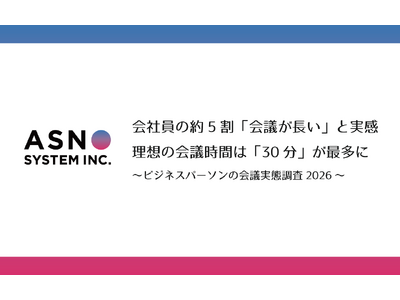 株式会社MCEAホールディングス(東京都港区/代表取締役社長 齋藤 武育)のグループ会社で、貸し会議室・レンタルオフィスの検索サービスを展開するアスノシステム株式会社(東京都港区/代表取締役社長 齋藤 武育/以下、「アスノシステム」)は、普段月数回以上会議に参加しているビジネスパーソン300名を対象に、「会議実態」に関する調査を実施しました。近年、働き方改革やDX推進により業務効率化が求められる中、企業における「会議」のあり方にも注目が集まっています。一方で、会議の長時間化や非効率性といった課題も指摘されています。そこで本調査では、ビジネスパーソンの会議時間や効率性に関する実態について明らかにしました。