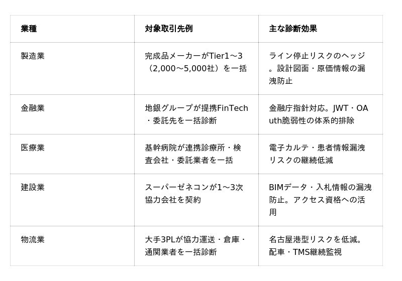 本プラットフォームの最大の特徴は、「大企業がサプライチェーン全体に対して一括契約する」新市場カテゴリを創出した点にあります。例えば、取引先1,000社に対して毎週診断を行っても1社あたり年間18,000円(1回あたり約346円)という圧倒的コスト効率を実現。診断実行から結果抽出・レポート生成まで完全自動化されており、人手を介さずにサプライチェーン全体のセキュリティを可視化・継続監視できます。