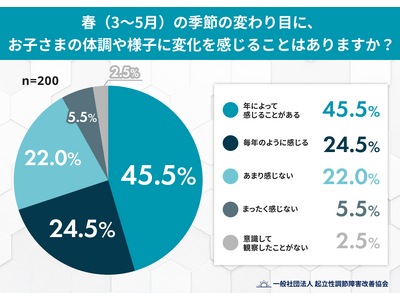 一般社団法人 起立性調節障害改善協会は、小中高生の子どもを持つ保護者200名を対象に「季節の変わり目と子どもの不調」に関する実態調査を実施しました。その結果、