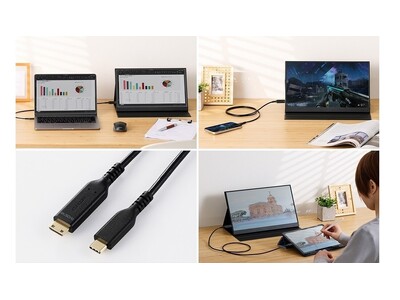 - USB Type-Cポート搭載のパソコンなどから、Mini HDMIポート搭載のモバイルモニターなどに映像を出力できる変換ケーブルです(※1)。
