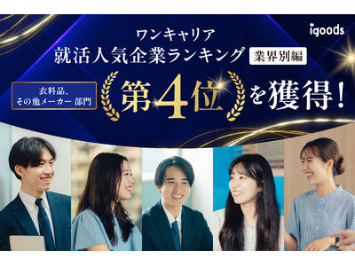オリジナルグッズを企画製造するアイグッズ株式会社(本社:東京都渋谷区)は、2026年3月、株式会社ワンキャリアが発表した「ワンキャリア 就活人気企業ランキング【業界別編】(27卒本選考期速報)」の【衣料品、その他メーカー】部門にて、第4位を受賞しました。
