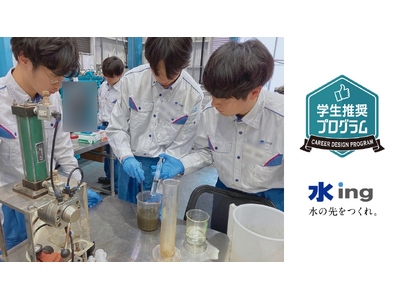 水ing株式会社(社長:安田 真規、本社:東京都港区)は、理系学生を対象に実施した水処理・環境プラントの研究・設計を体験できる当社の2週間インターンシップが、第9回「学生が選ぶ キャリアデザインプログラムアワード」において1,343プログラムの中から「学生推奨プログラム」として選出されたことをお知らせします。