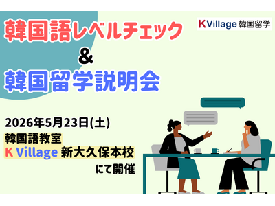 日本最大級の韓国語教室「K Village 韓国語」を運営する株式会社K Village(本社:東京都新宿区、代表取締役社長:桑原 元就)は、韓国語学習者の韓国留学への一歩を後押しすることを目的に、韓国人スタッフによるレベルチェックと留学カウンセラーによる説明会を実施します。