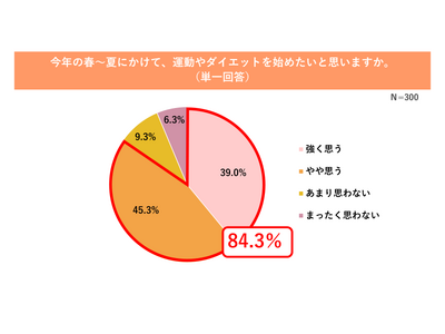 今春から夏にかけて84.3%が「運動を始めたい」と回答しており、運動に対する極めて高い意欲がうかがえます(図1参照)。