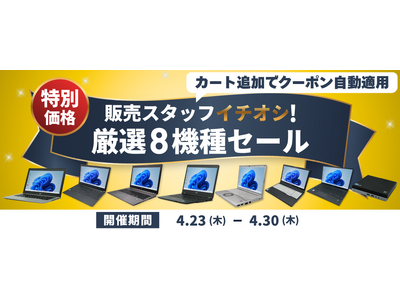 関西電力グループの株式会社ポンデテック(本社:大阪府吹田市、代表取締役:財津和也)は、公式通販サイト「PC next」にて、2026年4月23日(木)~ 4月30日(木)の8日間、「販売スタッフイチオシ!厳選8機種セール」を開催します。