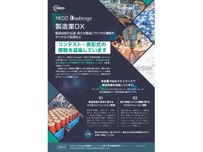 コンテスト・表彰式の概要、申込み方法などは、「NEDO Challenge, 製造業DX ~製造技能の伝承・新たな製造ノウハウの構築をデジタルで実現せよ~」専用HPをご確認ください。
