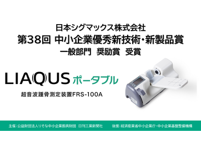 日本シグマックス株式会社(本社:東京都新宿区、代表取締役社長:鈴木 洋輔)は、公益財団法人りそな中小企業振興財団(以下、りそな中小企業振興財団)と日刊工業新聞社が主催する「第38回中小企業優秀新技術・新製品賞」にて、小型・軽量で場所を選ばず使用可能な「超音波踵骨測定装置FRS-100A『LIAQUS(リアクス)ポータブル』(以下、LIAQUSポータブル)」が一般部門・奨励賞を受賞いたしました。
