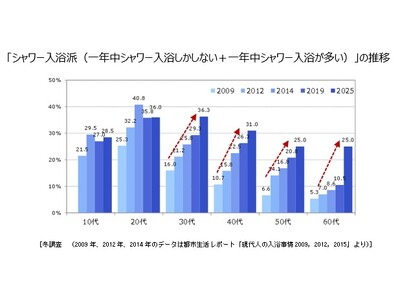 ■「シャワー入浴派」は30代以上で増加し、年代差が縮小