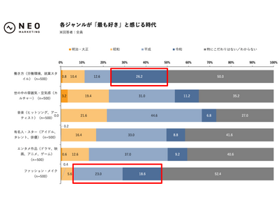 ジャンル別・好きな時代:音楽・エンタメは平成が最高評価、働き方だけは令和が圧倒的に支持される