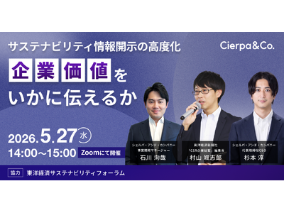 シェルパ・アンド・カンパニー株式会社(本社:東京都品川区、代表取締役CEO 杉本淳、以下「シェルパ」)は、東洋経済サステナビリティフォーラム(株式会社東洋経済新報社、本社:東京都中央区、代表取締役社長 山田徹也、以下「東洋経済新報社」)から『CSR企業総覧』編集長の村山颯志郎氏をゲストに招き、2026年5月27日にウェビナーを実施します。