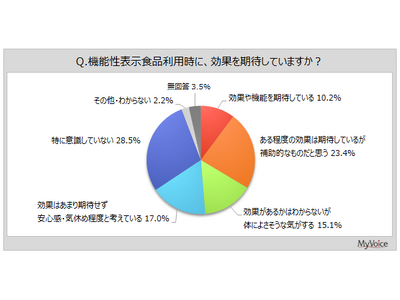 「体によさそうな気がする」が15.1%、「安心感・気休め程度と考えている」が17.0%、「特に意識していない」が28.5%です。