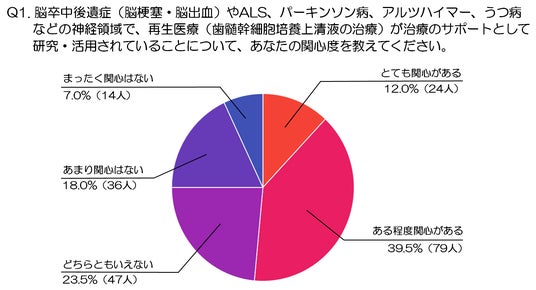 https://hitonowa-medical.com/ )は、「再生医療(歯髄幹細胞培養上清液の治療)による脳卒中後遺症(脳梗塞・脳出血)やALSなど神経疾患のサポートに関する意識調査」を実施しました。再生医療にどのような関心が寄せられているのか、何が期待され、どのような情報が求められているのかを多角的に探っています。