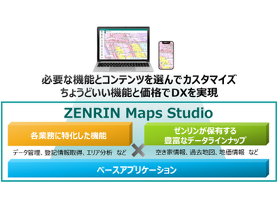 株式会社ゼンリン(本社:福岡県北九州市、代表取締役社長:竹川道郎、以下ゼンリン)は、2026年5月18日より、セミオーダー型の業務支援クラウドサービス「ZENRIN Maps Studio(ゼンリン マップス スタジオ)」の提供を開始します。当社が保有する豊富な地図情報アセットから、業務に必要な機能・コンテンツを組み合わせて専用のアプリケーションを構築・利用できる新しい形態のクラウドサービスです。お客様ごとに最適化されたDX環境を、無駄なく、低コストかつ短期間で提供します。
