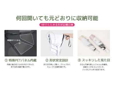 独自の形状記憶技術により、閉じた瞬間に折り目が整う晴雨兼用傘