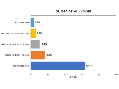6割以上が放置しており、実際に医療機関を受診した方は2割に満たない結果となりました。また、自己処置を試みた方が6.0%おり、感染リスクや瘢痕形成の危険性が懸念されます。
