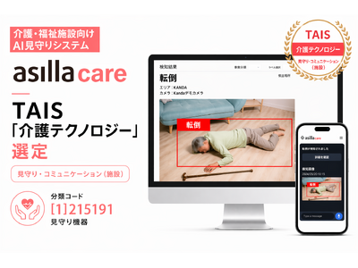 「テクノロジーの力で安心で快適な世界へ」をビジョンに掲げる株式会社アジラ(本社:東京都町田市、代表取締役CEO 尾上 剛、以下「アジラ」)は、当社が開発・提供する介護・福祉施設向けAI見守りシステム「asilla care」が、公益財団法人テクノエイド協会が運営する福祉用具情報システム(TAIS)において、「介護テクノロジー」(見守り・コミュニケーション(施設))に選定されたことをお知らせします。