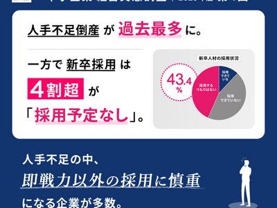 一方で、新卒人材は43.4%、外国人人材は66.0%が「採用するつもりはない」と回答しており、 深刻な人手不足の中にありながら教育コストや受け入れ体制への懸念から、即戦力以外の採用には慎重な企業が多いのことがうかがえます。