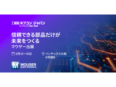 Mouser Electronics(マウザー・エレクトロニクス 本社:米国テキサス州マンスフィールド、以下マウザー)は、2026 年 5 月 13 日(水)~15 日(金)にインテックス大阪にて開催される「関西ネプコンジャパン」に出展いたします。本展示会は関西地域で唯一のエレクトロニクス開発・実装展で、電子機器の開発・製造に関わる企業620 社が出展予定です。 会期中はマウザーブースにて公式 SNS をフォローいただいた方を対象に、オリジナルエコバッグをプレゼントいたします。