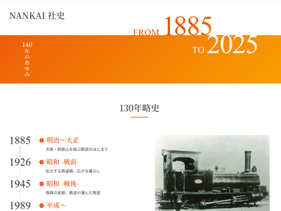 株式会社NANKAI(社長:岡嶋 信行)は、南海電鉄140年史『南海電鉄 最近の10年 2015―2025 Legacy into the Future」を、2026年4月にリニューアルした当社公式サイト内の特設サイトで公開しています。