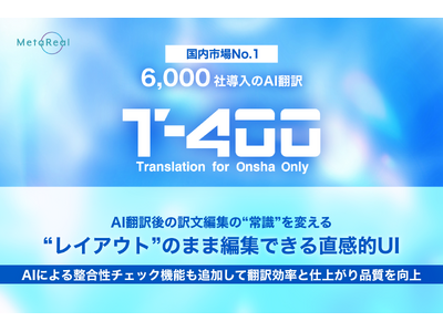 株式会社メタリアルグループで、国内市場No.1※のAI翻訳サービスを開発・提供する株式会社ロゼッタ(代表取締役:五石 順一)は、2026年4月28日、高精度産業翻訳AI「T-4OO(ティーフォーオーオー)」において、新しいユーザーインターフェース(UI)の提供を開始いたします。